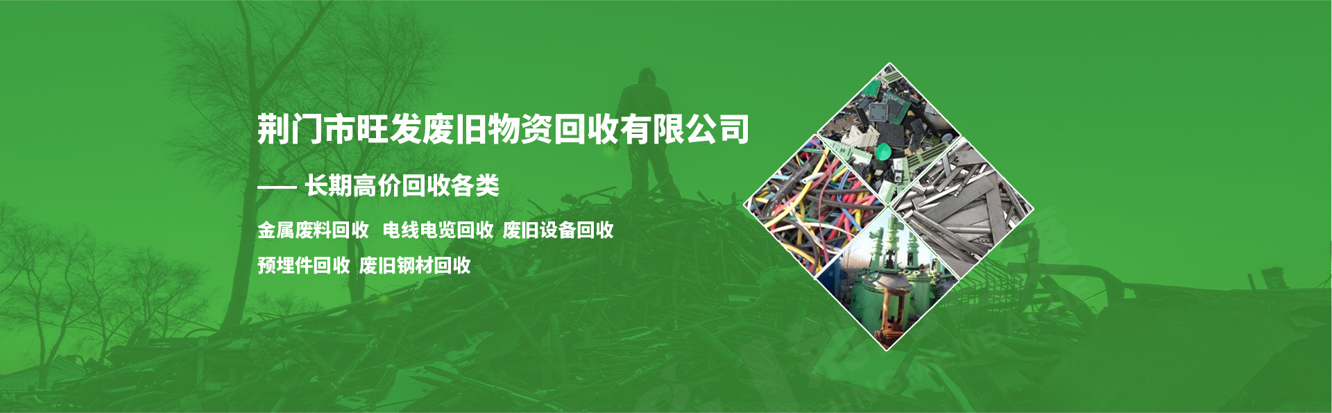 荊門市旺發(fā)廢舊物資回收有限公司,長期高價上門收購廢舊鋼材、有色金屬和廢舊設(shè)備及物資。價格合理、誠實守信、安全方便,愿有廢舊物資需要處理的企業(yè)單位及個人聯(lián)系洽談回收事宜。 荊門市旺發(fā)廢舊物資回收有限公司,我們本著互利共贏的宗旨,愿與您攜手共創(chuàng)美好的明天!歡迎廣大朋友們來電咨詢!